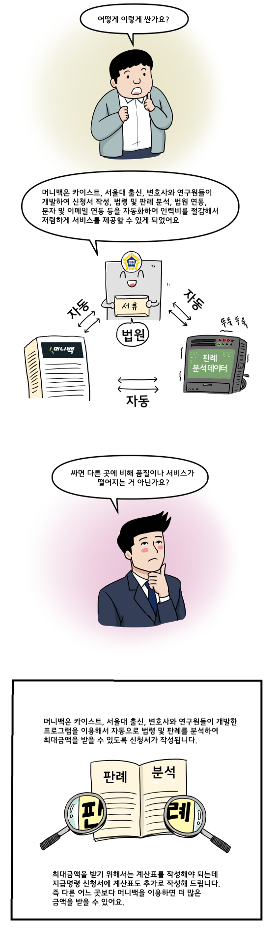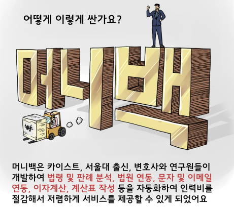 "머니백"은 카이스트 출신 변호사들이 만든 "비대면 자동화 법률 서비스"입니다