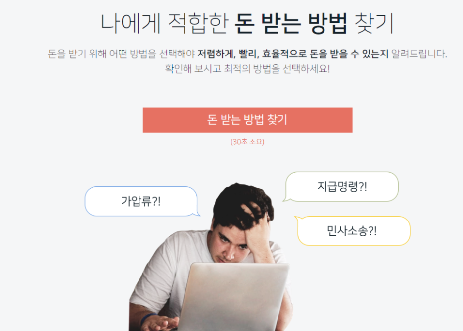 못 받은 돈이 있는데 쉽고! 저렴하게! 빨리! 돈을 받을 수 있는 방법이 있나요?