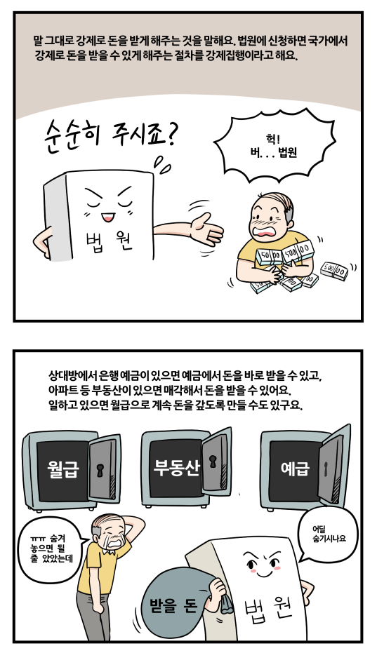 그런데 지급명령이 확정돼도 상대방이 돈을 안주는 경우가 있습니다. 그런 경우에는 머니백에 강제집행을 신청하면 강제로 돈을 받을 수 있습니다.