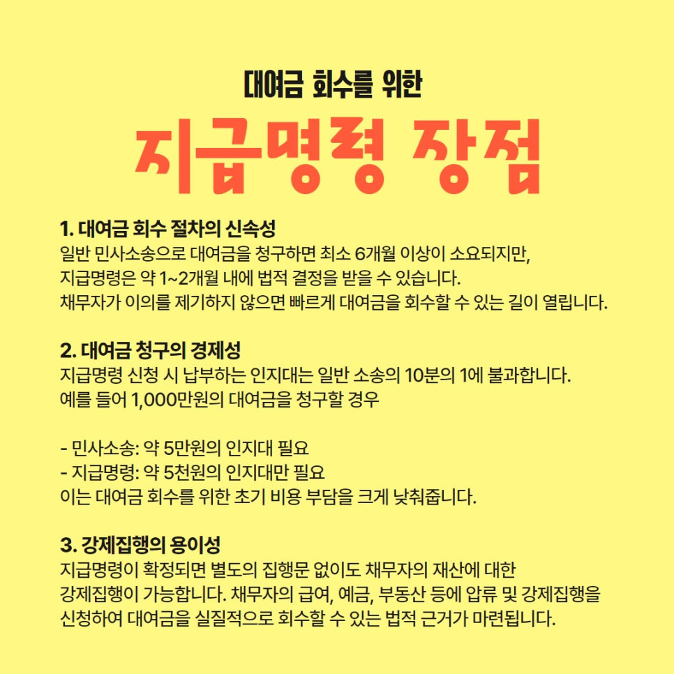 #4. 대여금 회수를 위한 지급명령의 절차적 장점