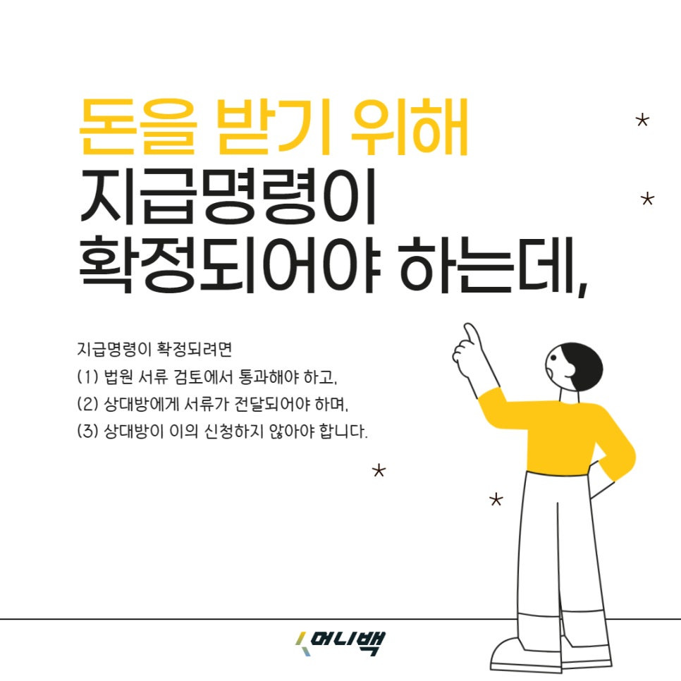즉 돈을 받기 위해서는 지급명령이 확정되어야 하는데,