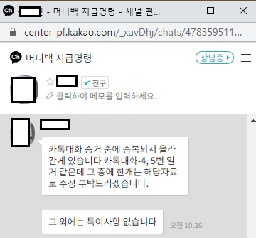 머니백 카톡 수정 요청 예시