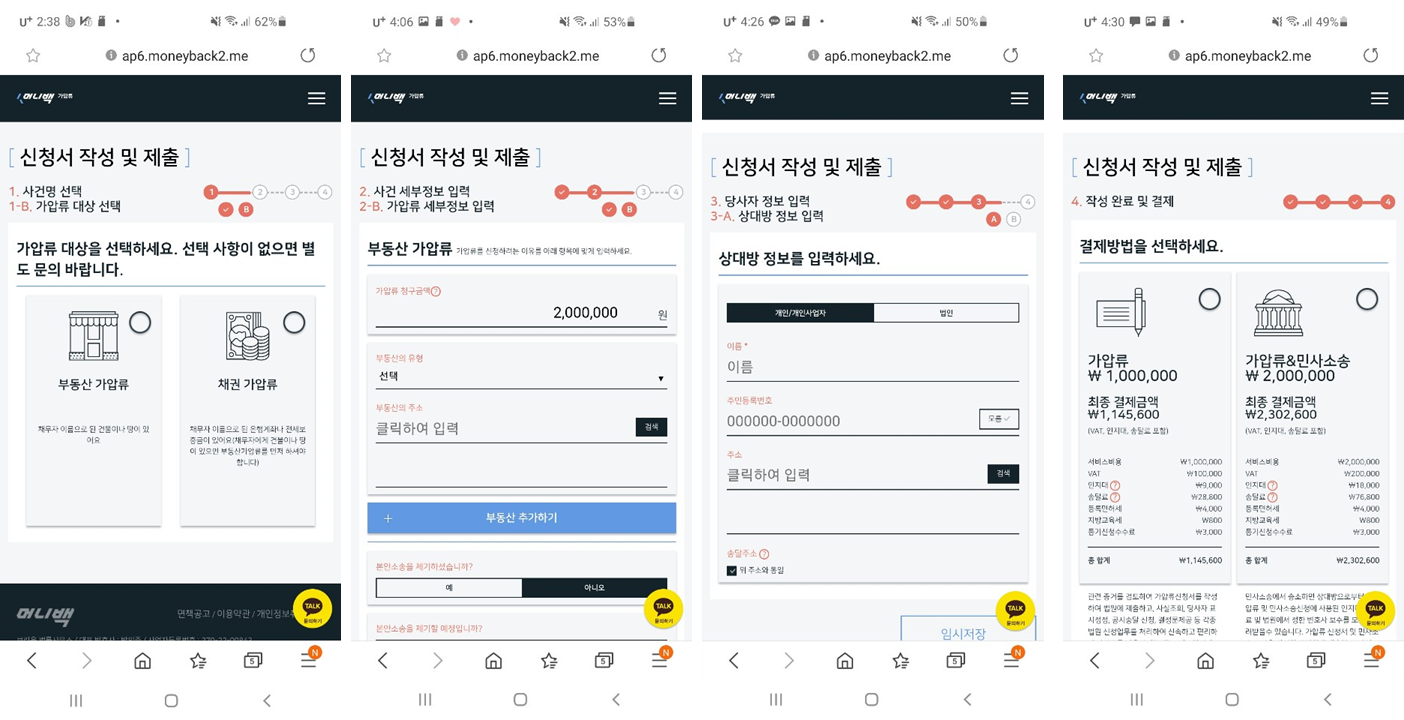신청자 분은 돈을 빌려주고 4000만원을 못 받어서 2020년 5월 머니백 사이트를 통해 온라인으로 가압류를 신청하셨습니다. 온라인 접수 후, 8일반에 가압류 결정을 받았습니다.