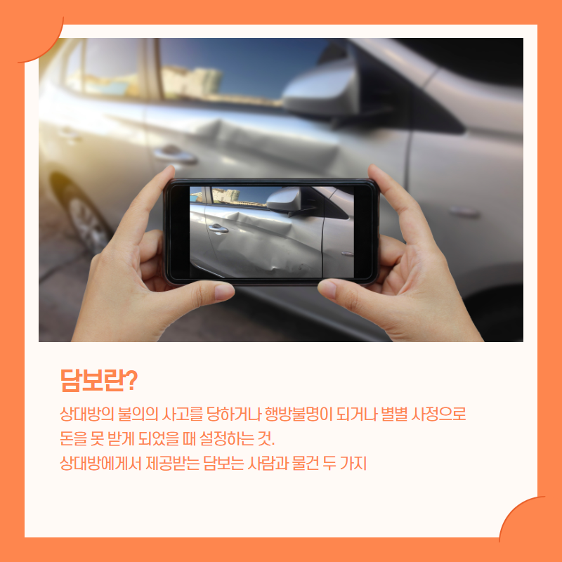 이것이 바로 상대방에게서 제공받는 ‘담보’라는 것인데요. 상대방의 불의의 사고를 당하거나 행방불명이 되거나