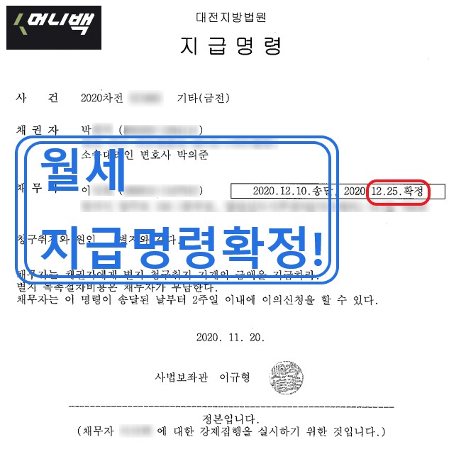2021년 7월 지급명령결정 확정되었습니다. (아래 링크 누르시면 해당 사례로 이동합니다.)