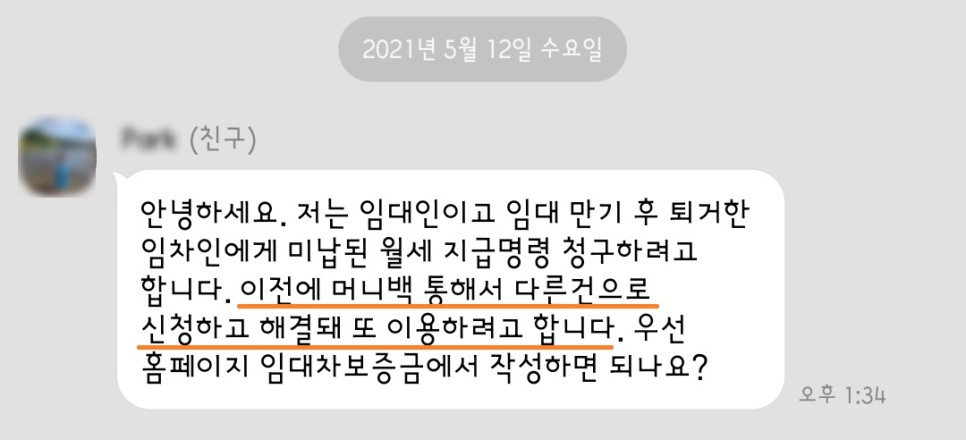 이에 머니백과의 상담을 통해 머니백에 월세 지급명령을 신청하셨습니다.
