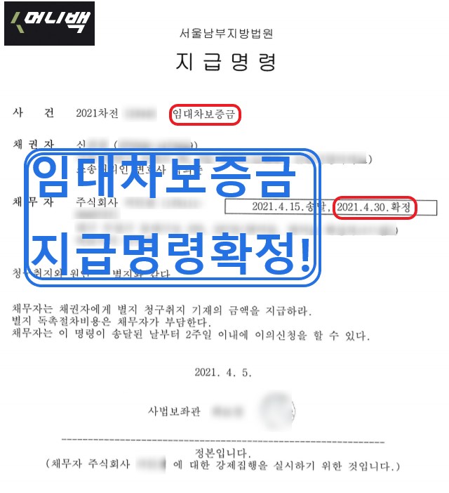 그리고 약 한달 후 2021년 5월 강씨는 보증금 지급명령결정이 확정되었습니다.