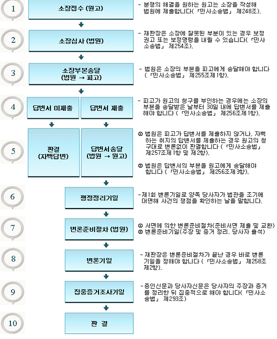 한번 재판으로 판결을 받으므로 소장을 작성할 때 법리에 맞게 작성하고, 법률 요건에 따른 주장을 뒷받침할 증거를 모두 제출해야 빨리 신속하게 좋은 결과를 받을 수 있습니다.