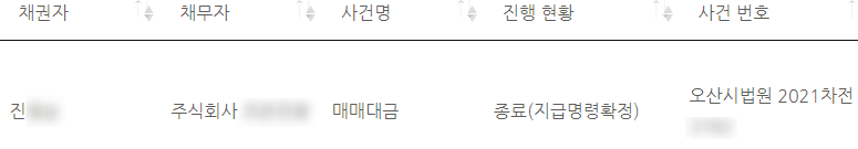 한달 뒤 2021년 6월 진씨는 매매대금 지급명령결정이 확정되었습니다.