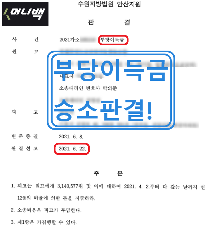 부당이득금 반환소송, 부당이득금 청구소송, 못받은돈 민사소송, 떼인돈 민사소송은 저희 머니백이 함께하겠습니다.