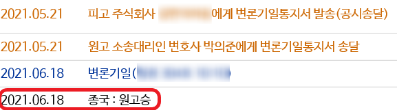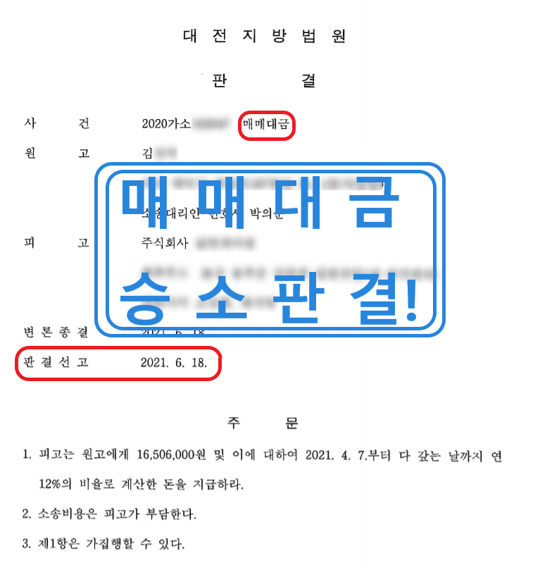 공시송달 후, 법정에는 원고만 출석하였고, 2021년 6월 원고는 매매대금 승소판결을 받을 수 있었습니다.