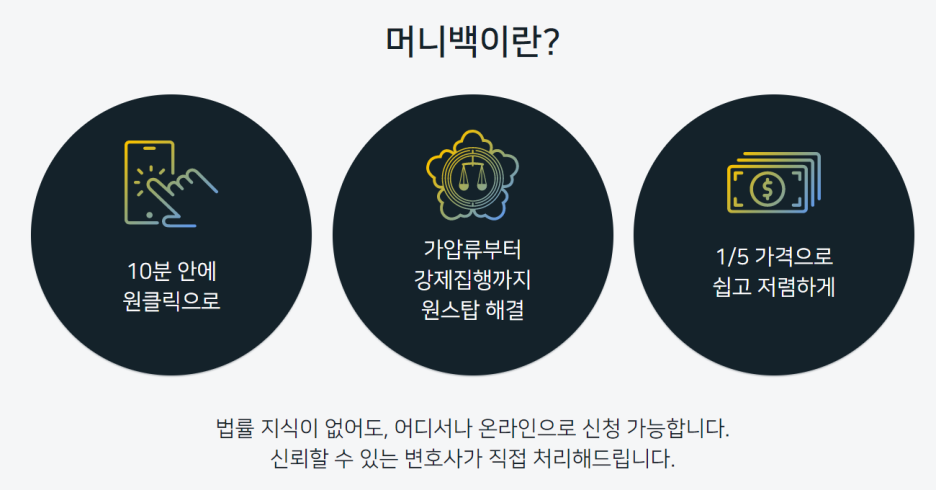 "머니백"은 카이스트 출신 변호사들이 만든 "비대면 자동화 법률 서비스"입니다