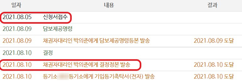 안씨는 2021년 8월 5일 머니백 가압류 신청을 하였고, 3일만에(주말 토,일 제외) 가압류결정정본을 받아볼 수 있었습니다.