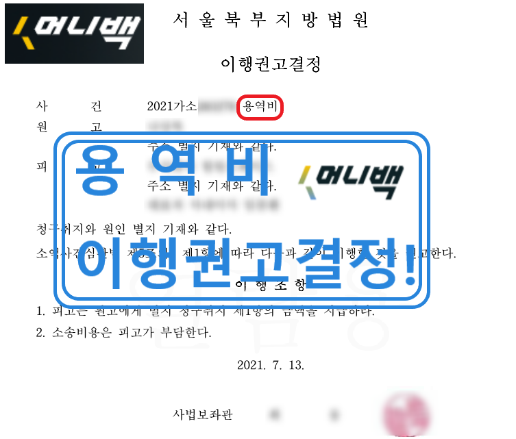 못받은돈 민사소송, 용역대금 민사소송은 머니백에서 도와드리겠습니다.