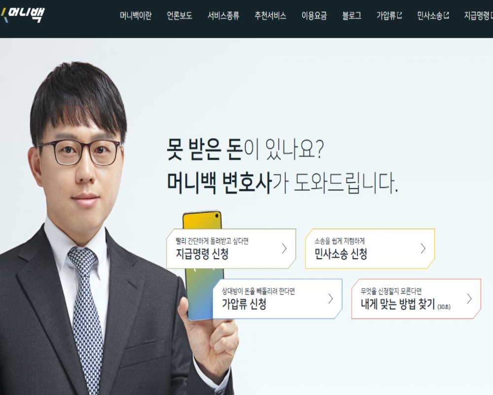 어플을 통한 비대면 서비스로 접근성도 뛰어나고 비용도 저렴한 머니백을 부담스럽지 않게 이용하셔서 못 받고 있던 돈, 민사소송을 통해서 꼭 받아내셨으면 좋겠는데요. 본업에 집중하실 수 있도록 민사소송전문 변호인을 고용할 수 있는 머니백 서비스를 이용해 보셨으면 좋겠습니다. 머니백을 통해서 AI의 법률자동화시스템과 경험이 많은 민사소송전문변호사로 꼭 승소하시길 바랍니다.