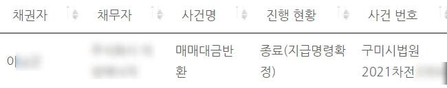 약 한달 후 2021년 9월 이씨의 매매대금반환 지급명령결정이 확정되었습니다.