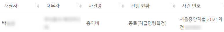 그리고 2021년 11월 백씨의 머니백 용역대금 지급명령결정이 확정되었습니다.