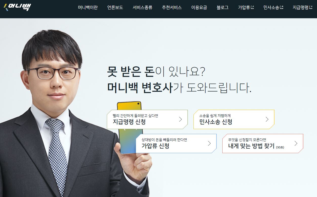 지급명령에 대한 서비스 비용도 다른 법률사무소와 비교하여 1/10 정도로 저렴한 가격으로 서비스를 도와주기 때문에 비용이 부담스럽다고 생각이 드신다면 머니백을 이용해서 빠르고 저렴하게 신청할 수 있으실 것 같습니다. 머니백은 지급명령 뿐만 아니라 못받고 있는 돈을 받을 수 있도록 민사소송, 가압류 등을 모두 제공하고 있는데요. 신속성이 중요하며 소멸시효도 있기 때문에 빠르게 대처하는 것이 중요합니다. 머니백의 전문 변호인을 대리인으로 신청하여 승소하여 자신의 권리를 꼭 되찾으셨으면 좋겠습니다.