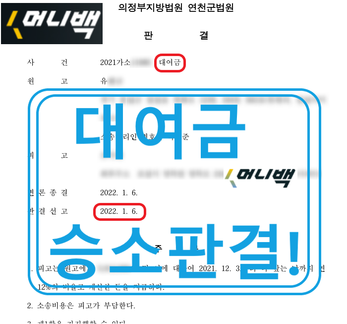 원고인 유씨는 피고인 박씨와 군대에서 만난 동기사이로 제대 이후에도 나이가 같아 친한 친구사이로 지내왔습니다. 그러던 어느날, 박씨는 유씨에게 교통사고가 나서 급하게 돈이 조금 필요하다며 150만원 정도 빌려줄 수 없겠냐며 요청하였습니다. 한 달 후, 160만원으로 이자까지 해서 갚겠다는 말에 유씨는 흔쾌히 돈을 빌려주었습니다. 그리고 일주일 뒤, 집 관련 문제가 생겨 돈이 더 필요할 것 같다며 100만원 정도 더 요구하였습니다. 유씨는 알겠다고 하고 돈을 빌려주었습니다. 워낙 친하고 자주만나는 사이라 유씨는 스스럼없이 돈을 빌려주었습니다. 그러나 피고 박씨는 그 이후에도 피치못할 사정이 생겼다는 이유로 여러 차례 돈을 빌려달라고 요구하였고, 그렇게 해서 빌려준 돈이 700만원이 넘었습니다. 중간중간 박씨가 5만원, 10만원 정도씩 돈을 갚긴 하였지만 어느순간부터는 연락조차 잘 받지 않았습니다. 돈이 없어서 그런가? 많이 곤란한가? 라는 생각으로 유씨는 박씨를 조금 더 기다려주었지만, 빌려준 돈이 적지 않았고 유씨도 개인 사정으로 돈이 필요하게 되었습니다. 결국 유씨는 2021년 11월 머니백에 대여금 민사소송 신청을 하였습니다. 그리고 두달도 되지 않아 승소판결문을 받아볼 수 있었습니다.