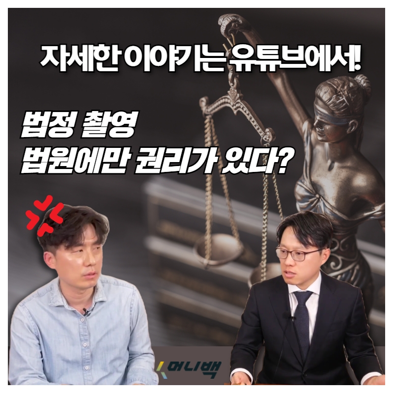 이번 머니백 유튜브에서는 법정 촬영의 권한이 법원에만 있는 이유에 대해 박의준 변호사님의 생각도 함께 들어보았는데요!