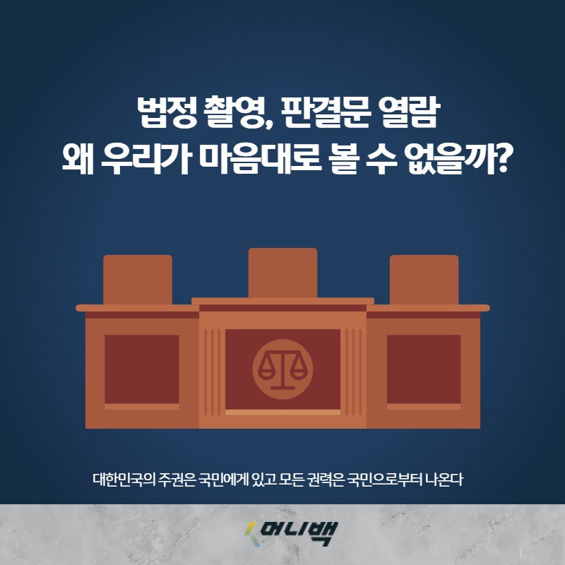 대한민국의 주권은 국민에게 있고 모든 권력은 국민으로부터 나온다는 말을 들어보신 적 있으시죠? 그런데 모든걸 투명하게 공개해야 하는 법정 안에서의 내용을 직접 촬영을 하거나 녹음하는 것이 허용되지 않는데요. 법정 촬영의 권한은 무조건 법원에만 있는걸까요?