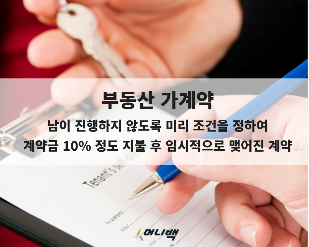 부동산 거래에서 다른 사람이 먼저 거래하는 것을 막기 위해 가계약을 진행하는 경우가 많습니다. 법적 용어에는 가계약이라는 용어가 명시되어 있지는 않지만 가계약도 하나의 계약으로 간주합니다. 부동산을 남이 사지 않게 미리 조건을 정해 놓고 임시적으로 맺는 계약인 가계약은 평균적으로 계약금의 10% 정도를 지불합니다. 가계약금을 돌려받을 수 있는 경우는 계약이 성립되지 않은 경우에만 돌려받을 수 있습니다. 만약 단순 변심으로 해지하려고 한다면 양측 사이에 특별한 약정이 없고, 그 효력이 인정된다면 파기가 가능합니다. 이때 매수인이 파기한다면 계약금을 포기하여야 하며 매도인이 파한다면 그 금액의 배액을 상환해야 가능합니다.