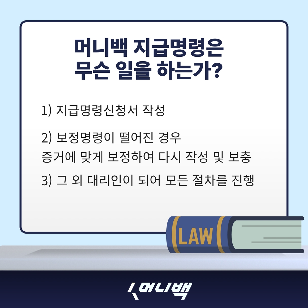 저희 머니백에서는 지급명령신청서 작성은 물론