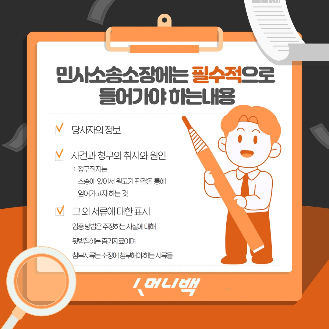 첨부서류는 소장에 첨부해야 하는 서류들입니다.