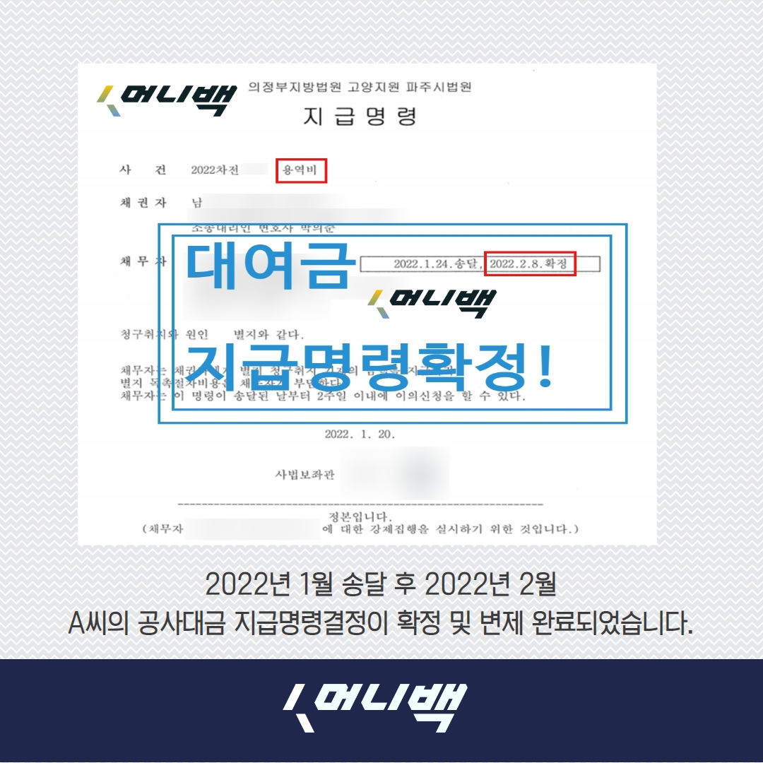 | 머니백 대여금 지급명령 확정! 성공후기 (0) | 2023.03.15 |