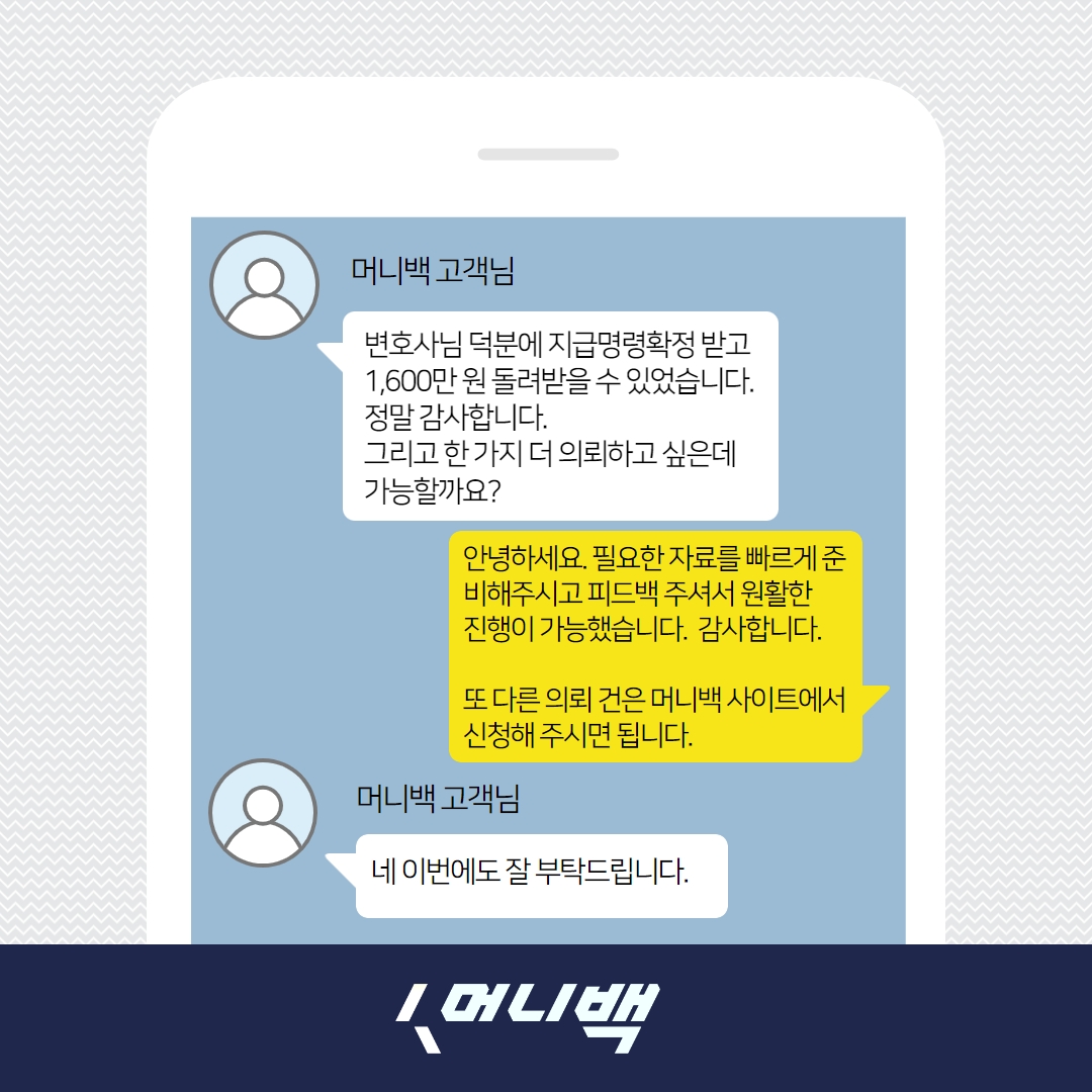 | [성공사례] 머니백 미수금 지급명령 신청만 해도 받을 수 있어요 (0) | 2023.04.07 |