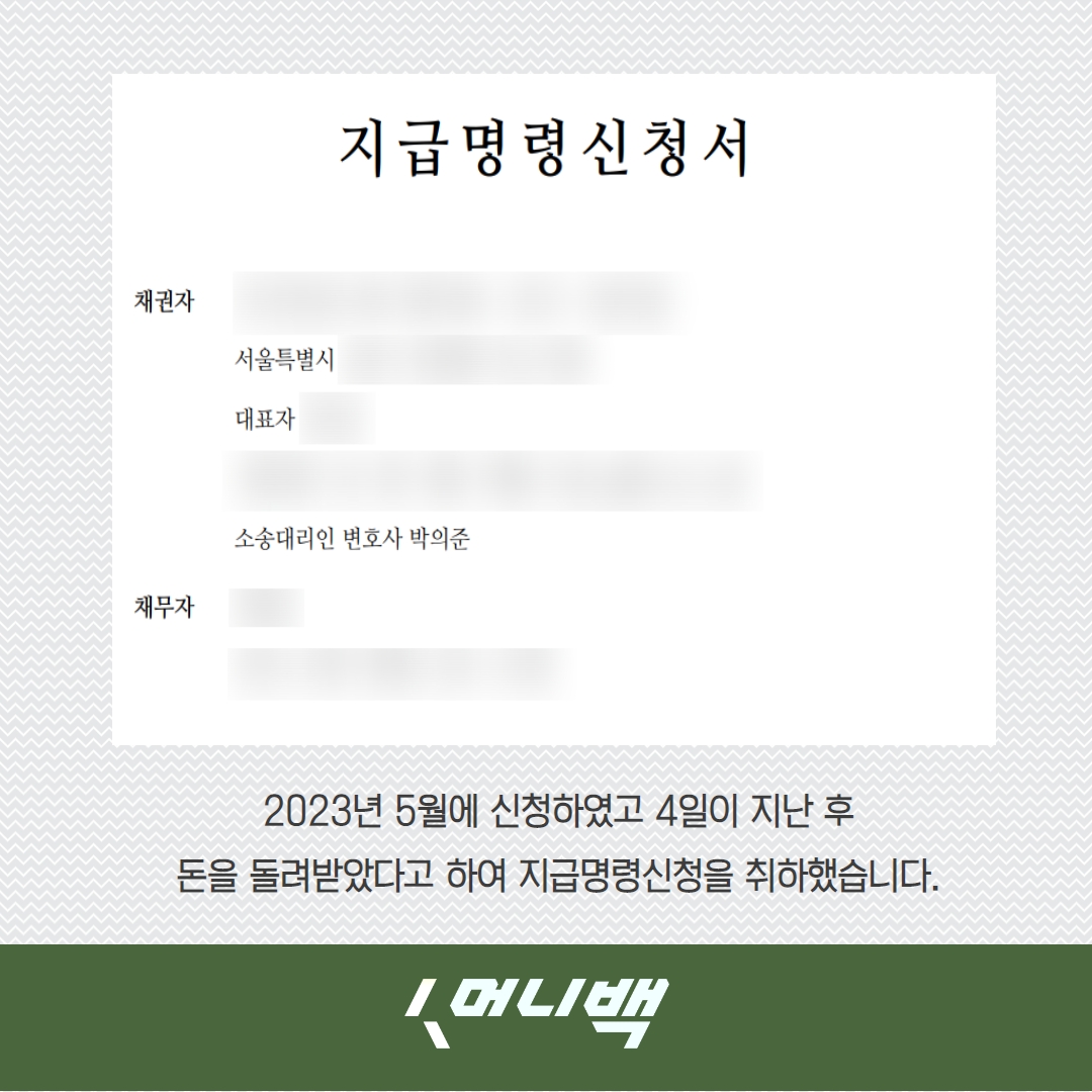지급명령신청하자마자 돌려받을 수 있어서