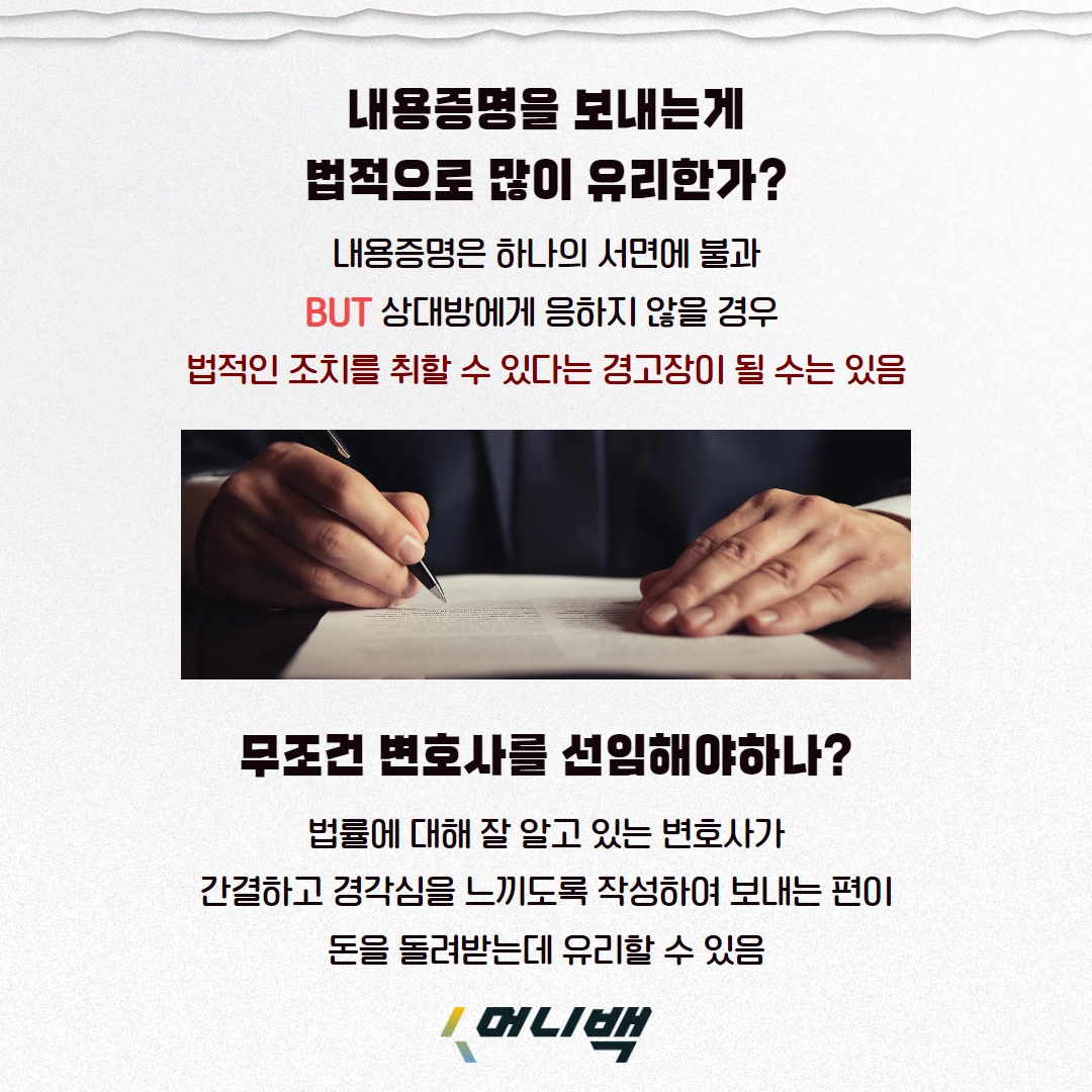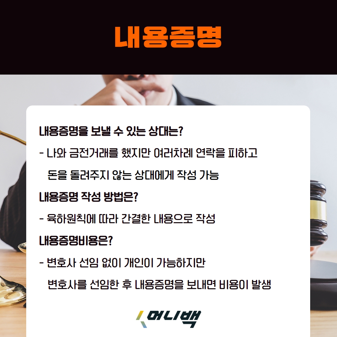 내용증명을 작성할 일이 있다면 머니백과 함께 하세요