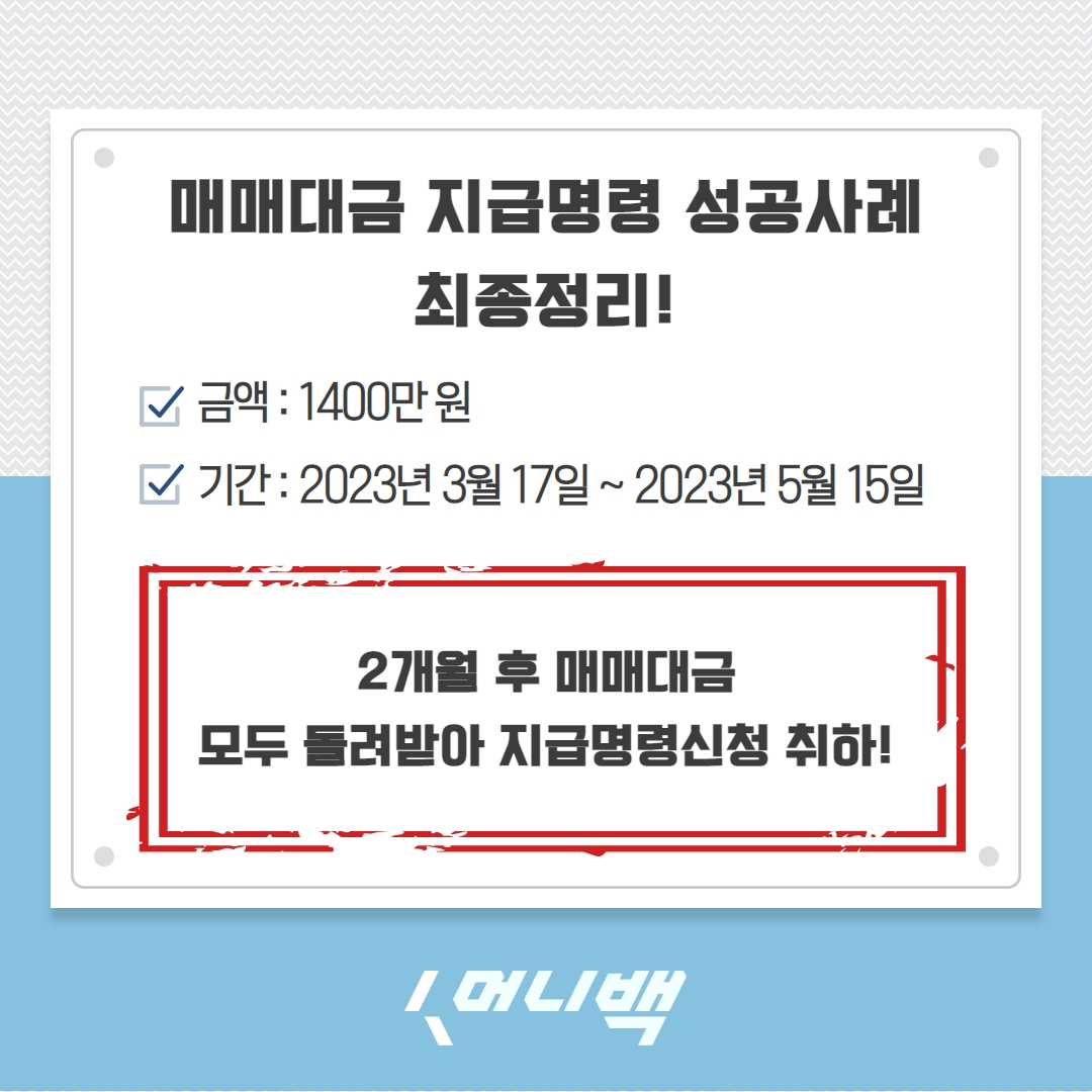 지급명령신청 후 2023년 5월 초 B씨로부터 매매대금을