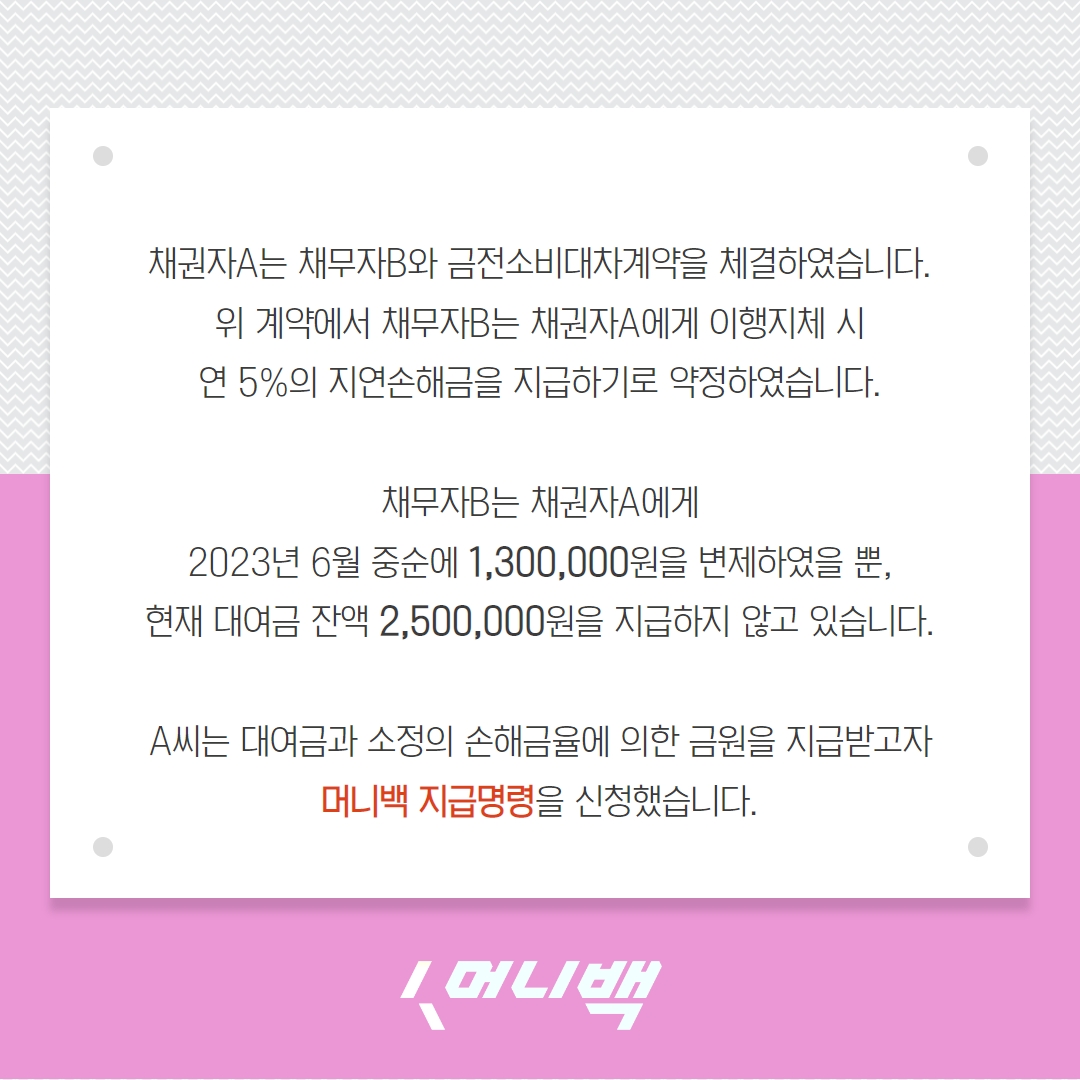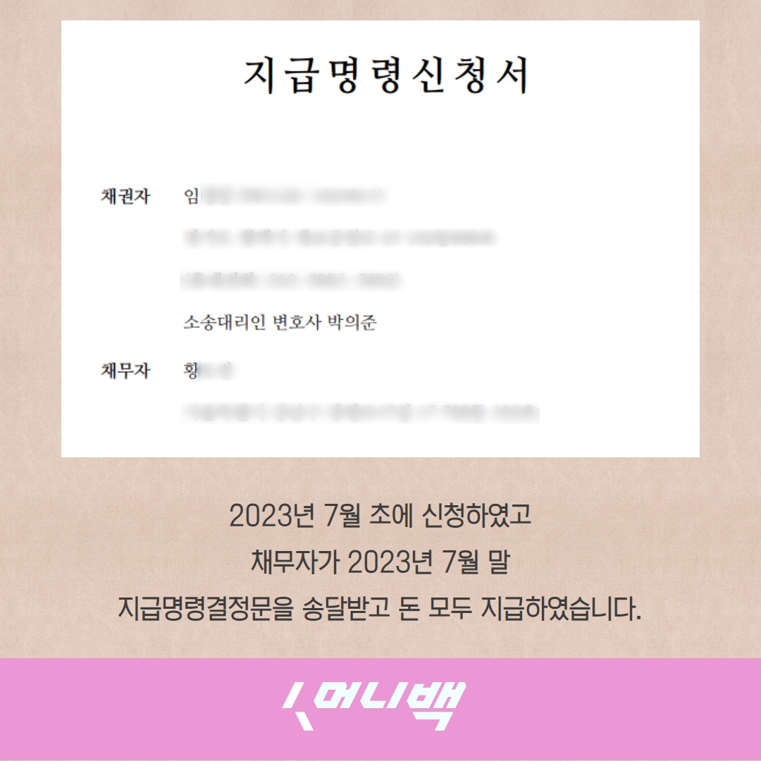 지급명령신청 후 2023년 7월 말 B씨로부터 대여금을