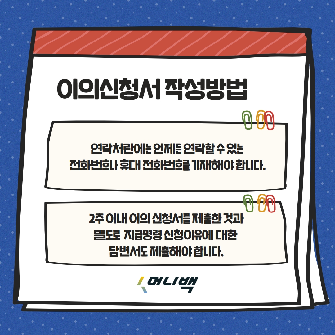 이의신청서를 작성하고