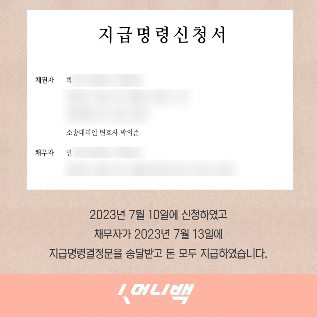 모두 돌려받은 A씨는 지급명령 취하를 진행했습니다.