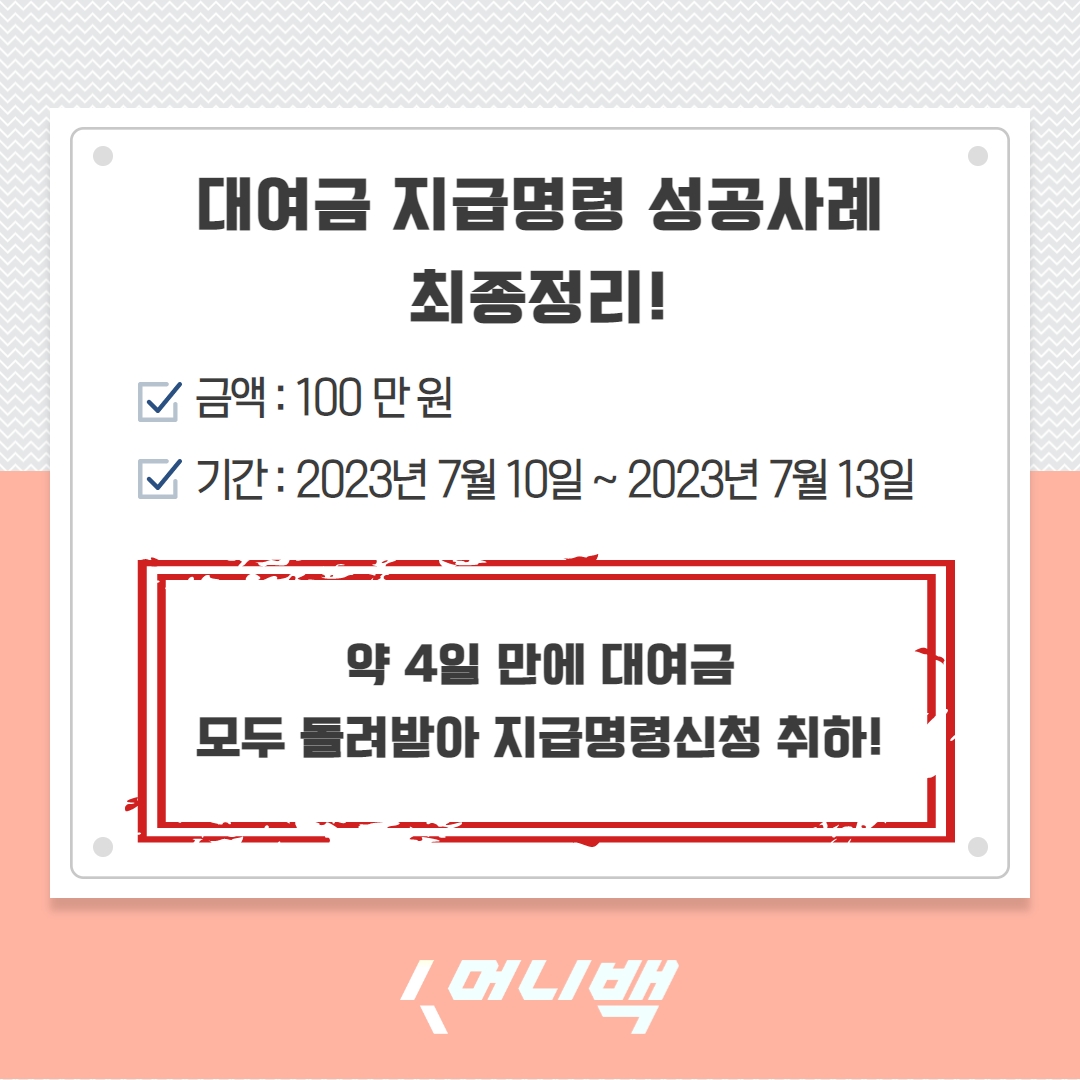 | [성공사례] 머니백 임금체불 지급명령 신청 후 돌려받은 후기 (0) | 2023.08.25 |