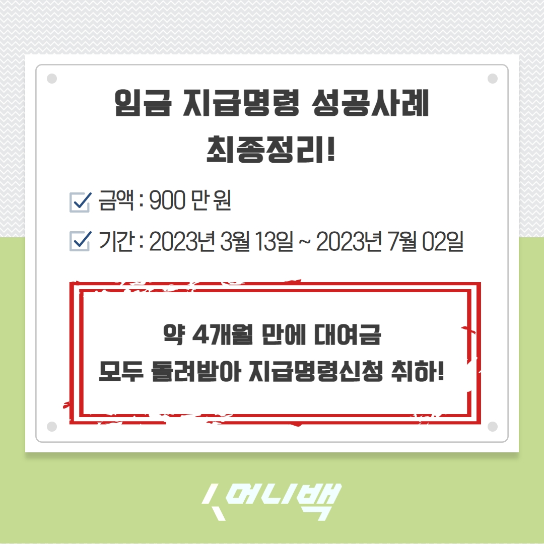 | [성공사례] 머니백 임금체불 지급명령 신청 후 돌려받은 후기 (0) | 2023.08.25 |