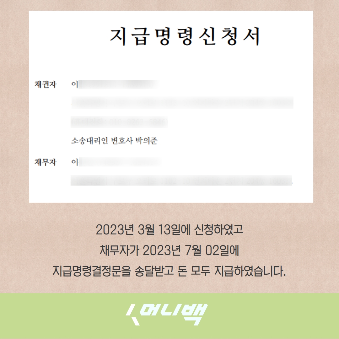 머니백 지급명령신청 하셔서
