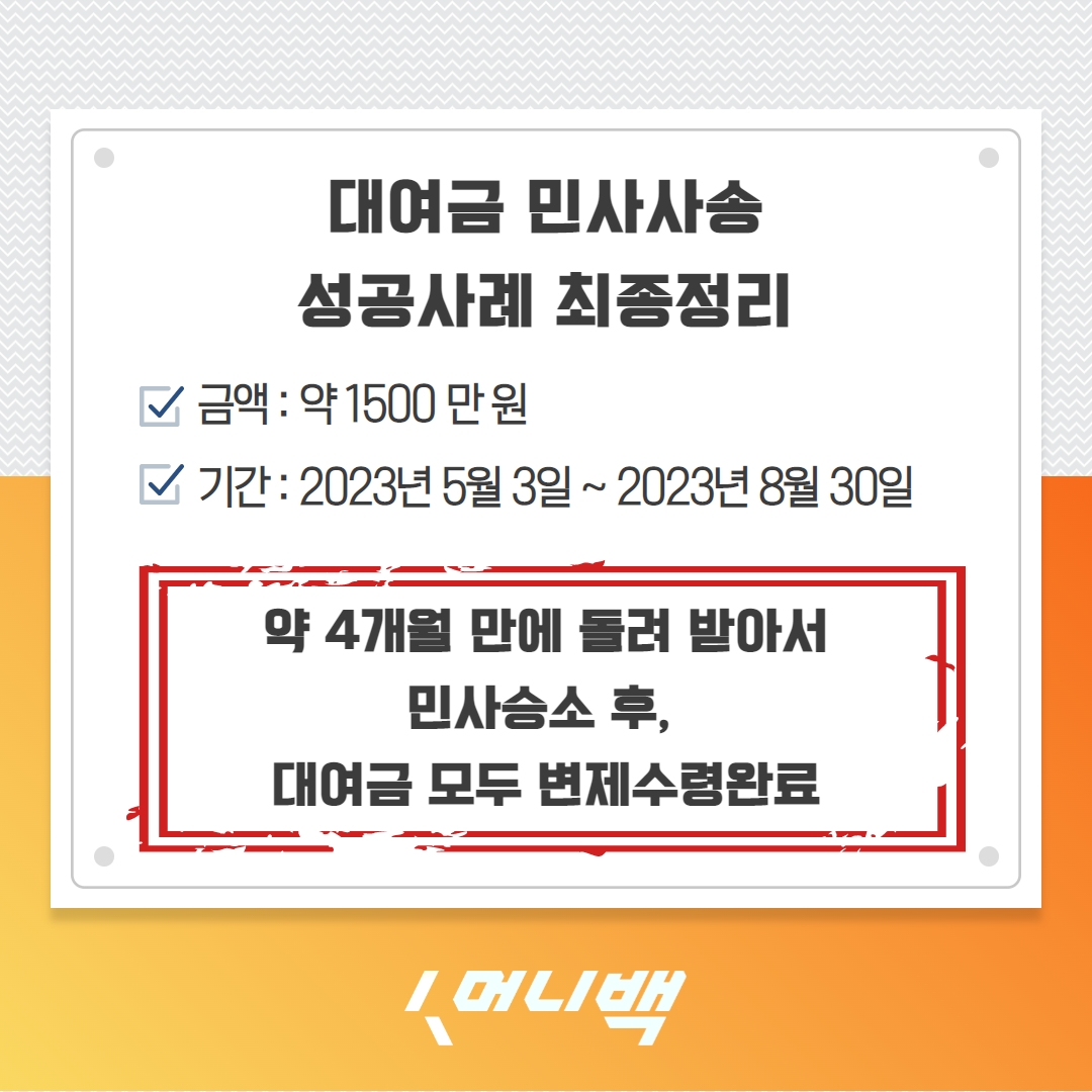 | [성공사례] 머니백 임금체불 지급명령 신청 후 돌려받은 후기 (0) | 2023.08.25 |