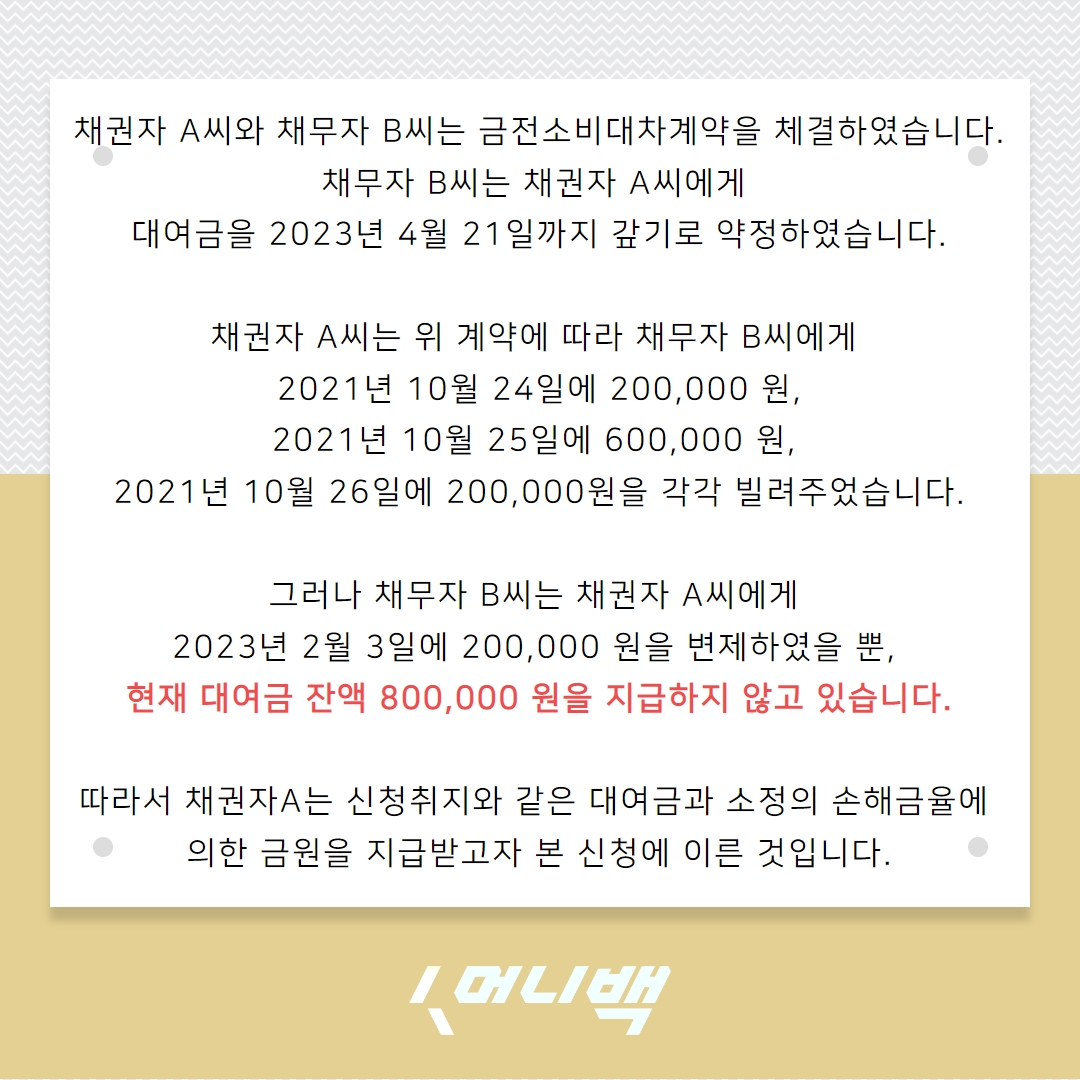 머니백 대여금 지급명령을