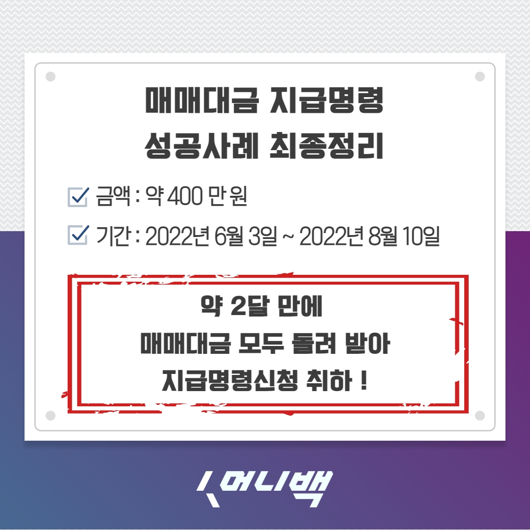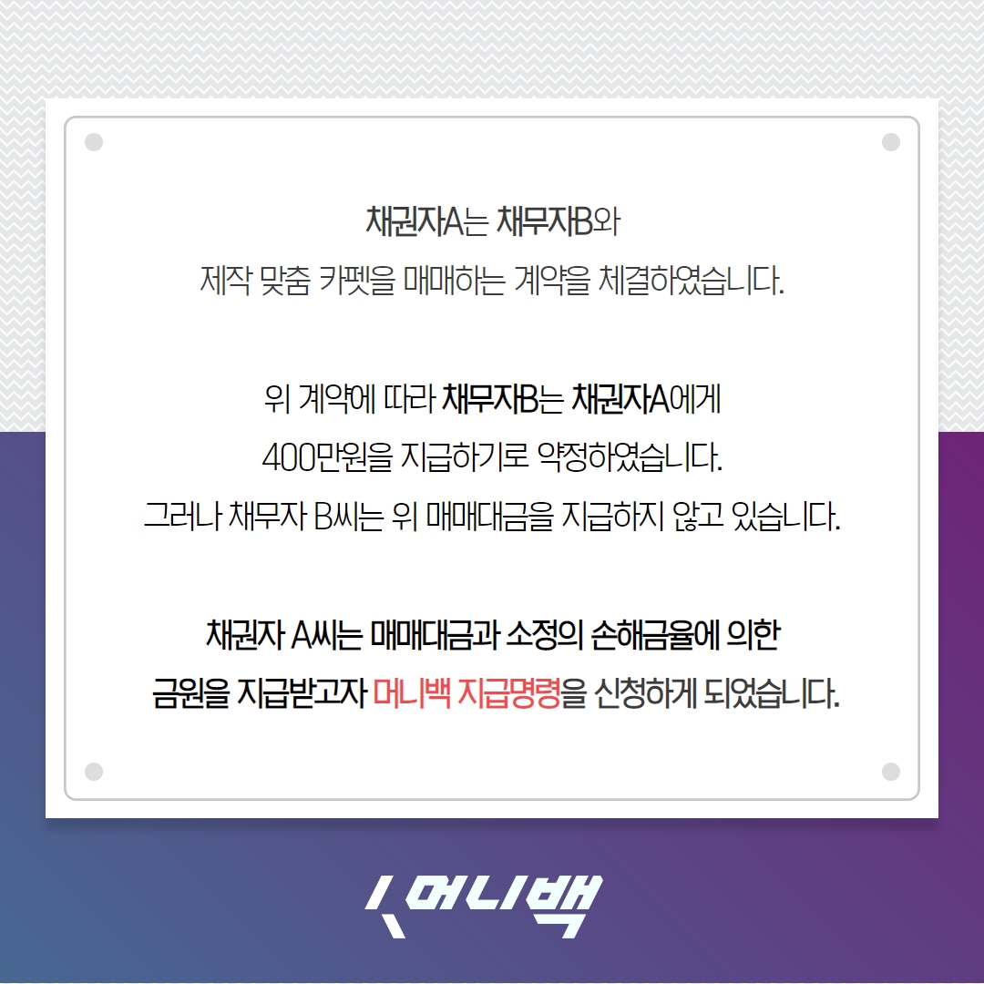 머니백 매매대금 지급명령을 신청하게 되었습니다.