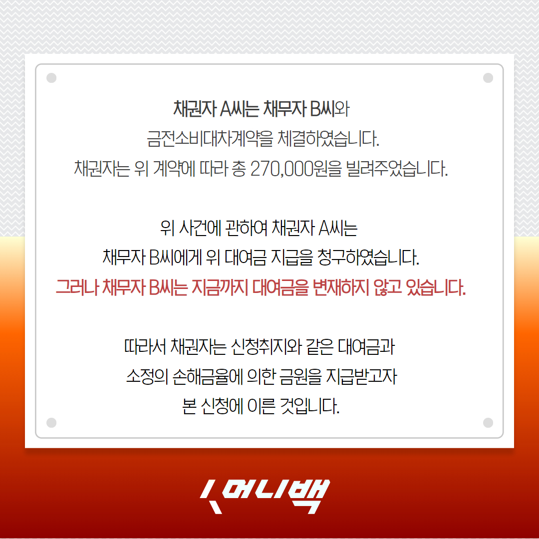 15만원으로 머니백 지급명령신청해보세요