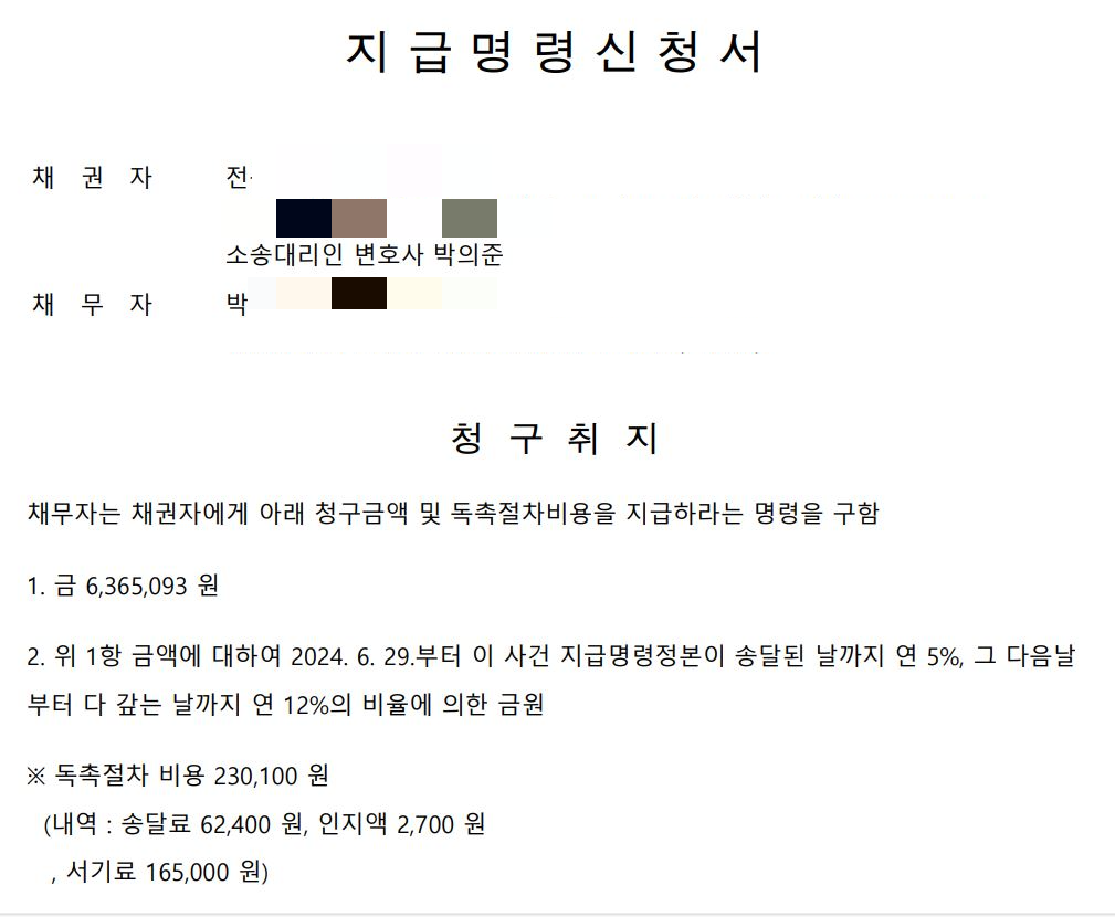 | 지급명령신청 셀프 비용이 다른 곳 보다 더 합리적인 이유 (0) | 2024.08.18 |