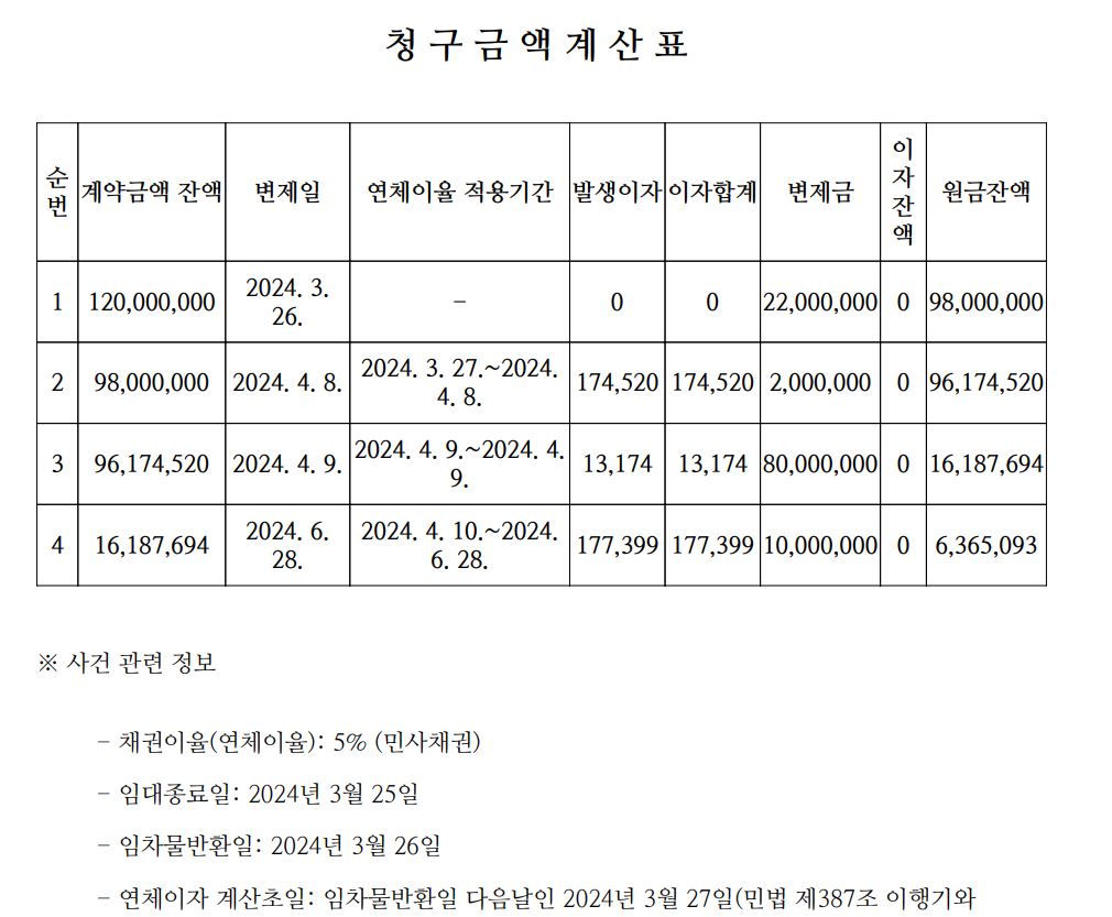 정확한 지연이자 계산: 머니백은 법정 이자율에 따라 지연된 기간에 대한 이자를 정확하게 계산해, A씨가 받아야 할 금액을 산출했습니다. 이를 통해 A씨는 이자까지 포함한 금액을 돌려받을 수 있었습니다.
