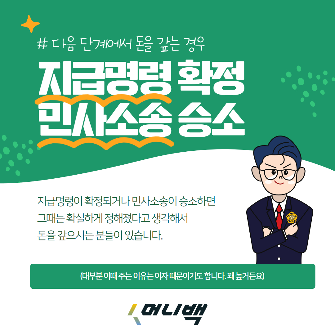 위의 단계에서 바로 돌려주면 좋겠지만 어렵다면 지급명령이 확정되거나