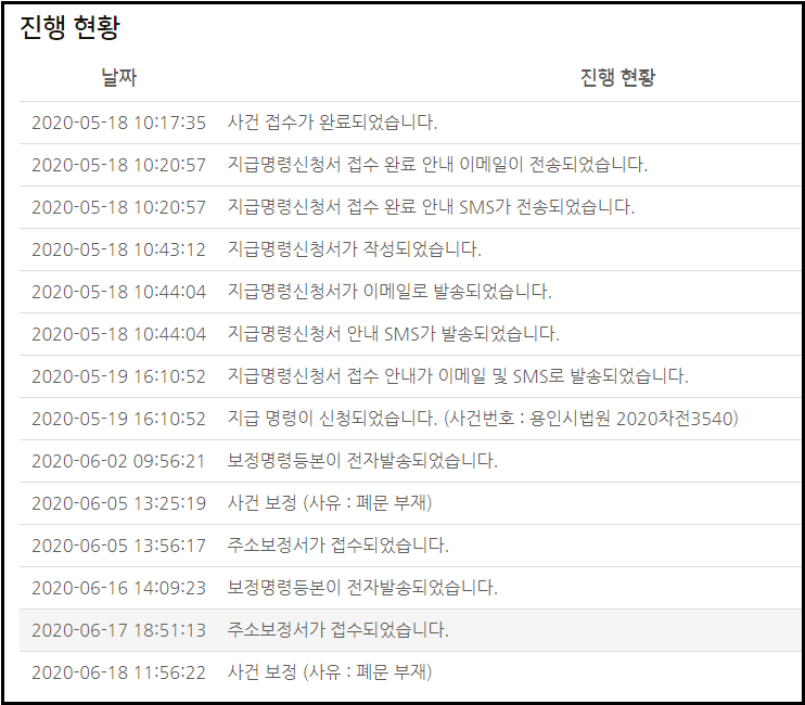 - 법원에 접수된 사건 번호를 알려드립니다.