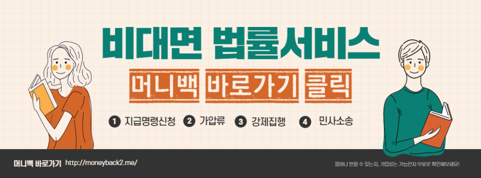- 머니백 모든 신청서(지급명령신청서, 민사소송 소장, 가압류 신청서 등)는 상대방을 압박하여 좋을 결과를 얻기 위해 변호사가 대리인이 되어 신청서가 작성, 제출됩니다.