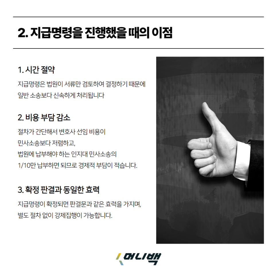 2. 지급명령을 진행했을 때의 이점