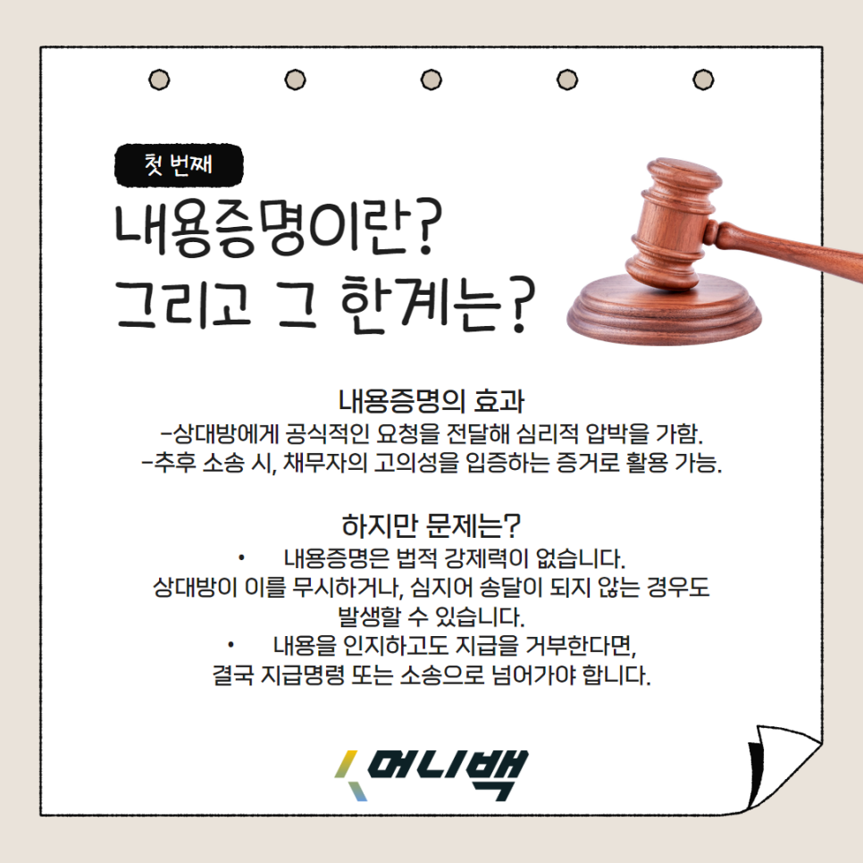 돈을 받지 못한 상황에서, 많은 사람들이 먼저 떠올리는 방법이 내용증명입니다.